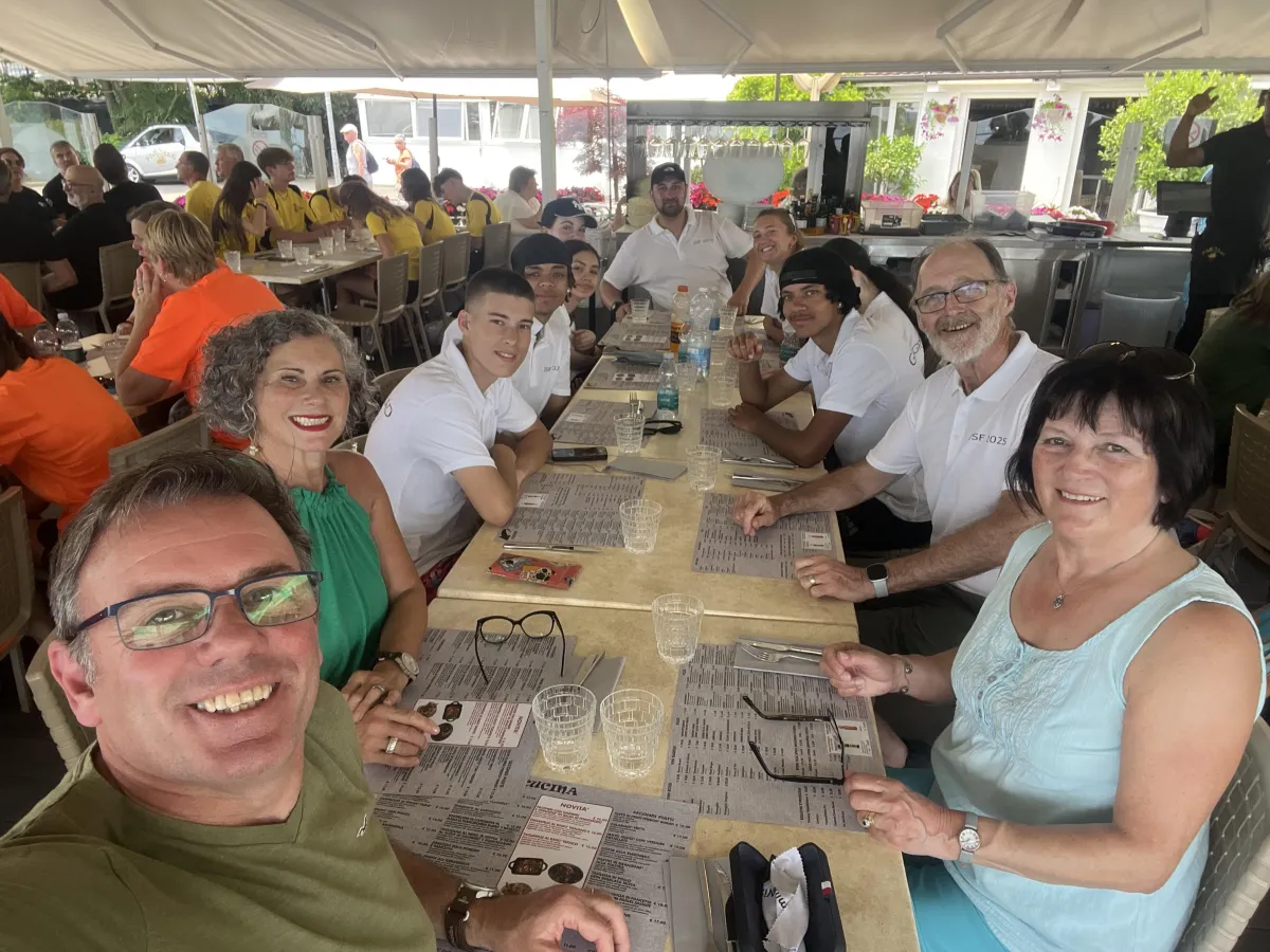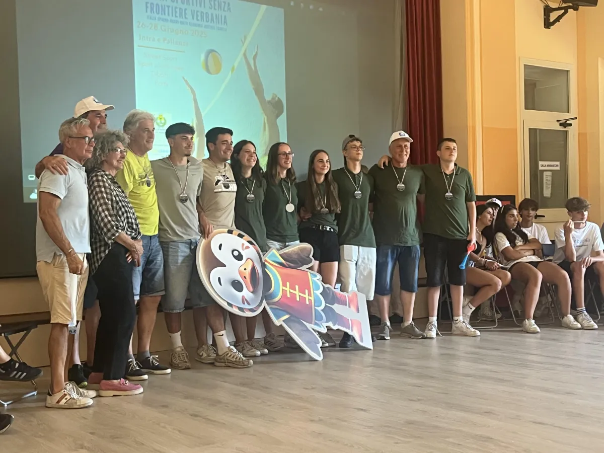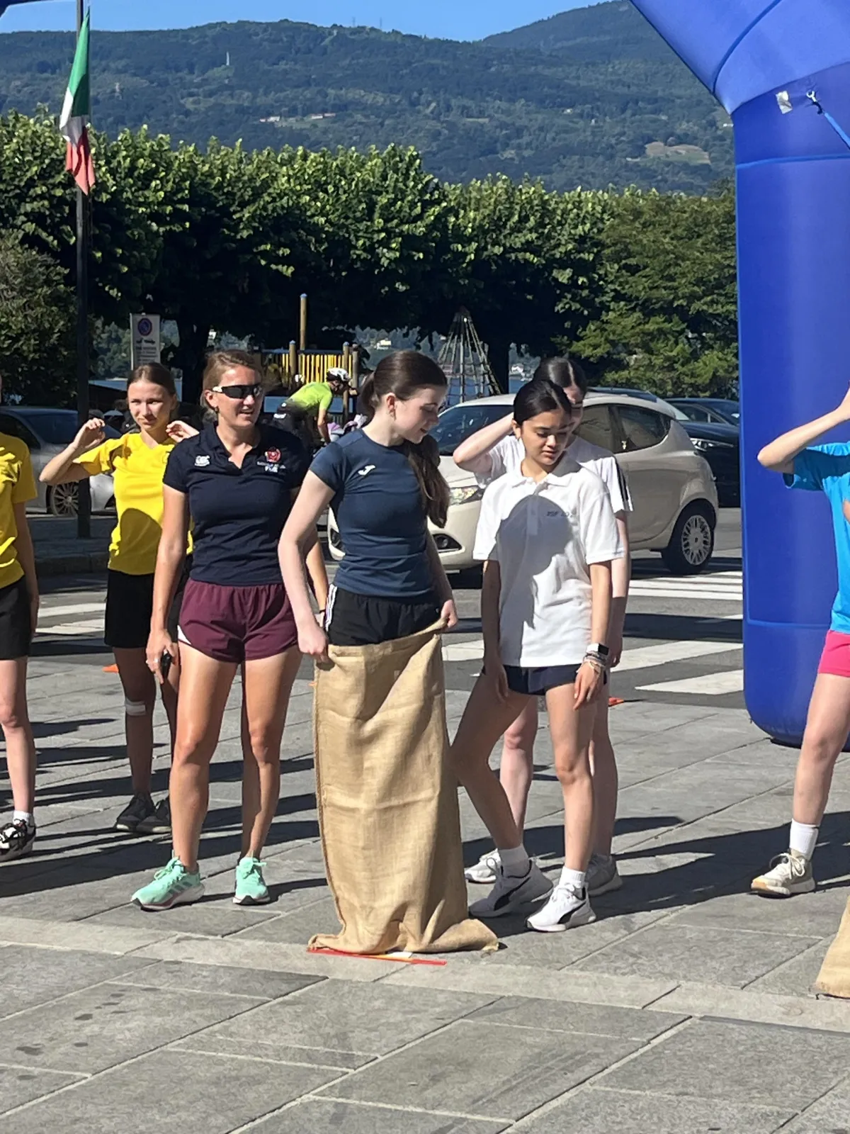 town) pus Crikvenica, Croatia (a twin of Verbania) took part in the games. Bourg de Peage sent a delegation, but could not bring a team because of exams at their school. There were two mornings of very competitive games (agility, basketball, boules/bocce, beach volleyball, relay race, sack race and more) which took place on the beach at the lake and in the town square, in the intense heat. Sackville’s super team did us proud but did not manage to win this year. EGTTA Chairman, Nick, did well in the Mayor’s rowing competition!